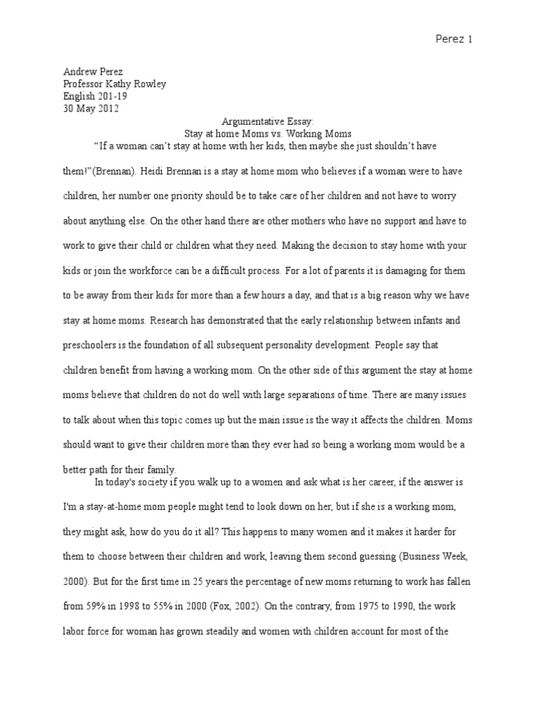 Get Argumentative Essay Working Mothers